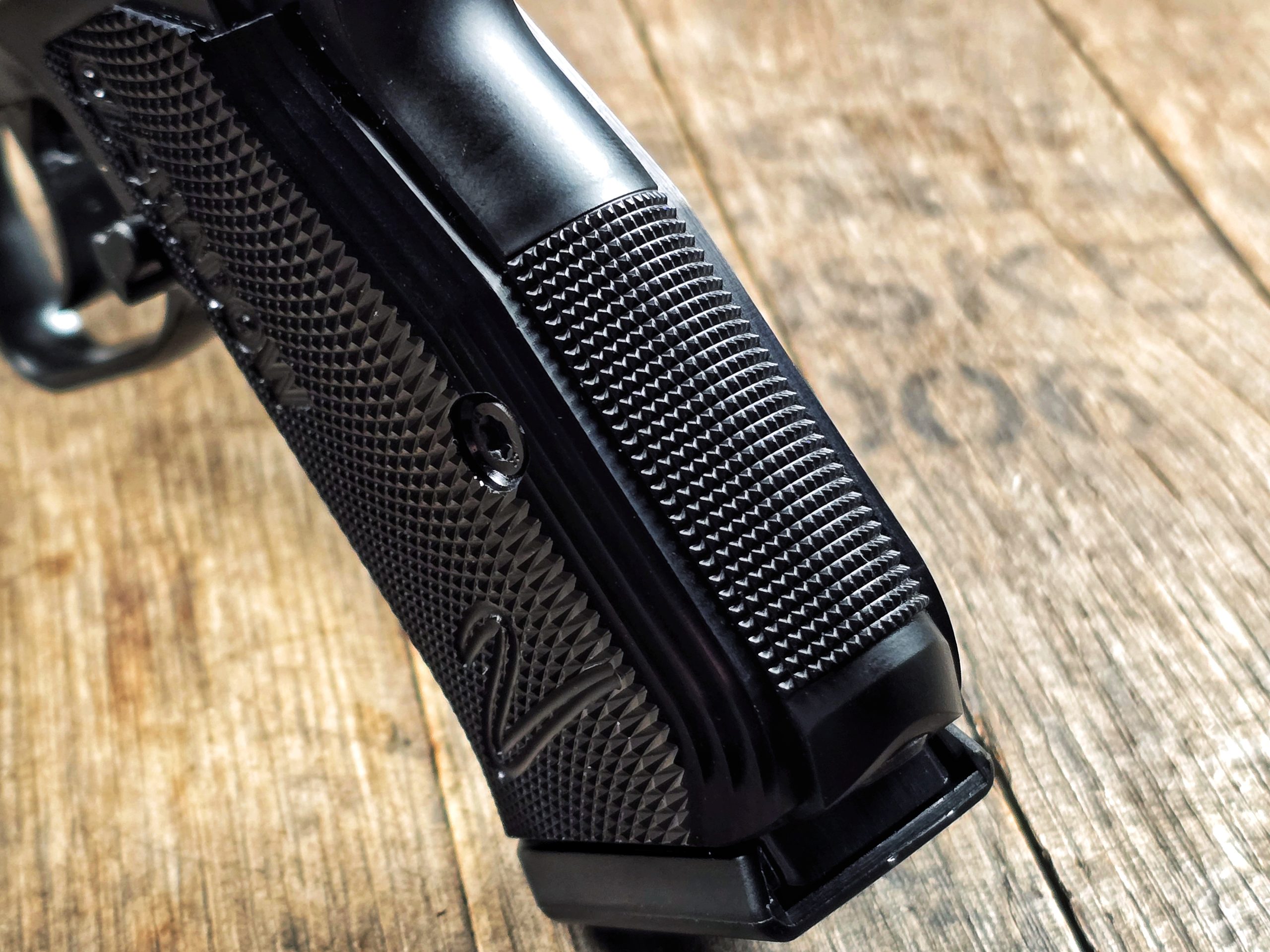 Also aiding control and fast shooting is CZ’s competition-style deep checkering on the frontstrap and backstrap. This is a big improvement over the shallow, vertical lines on the P-01 (heck, some 75 models are completely smooth).