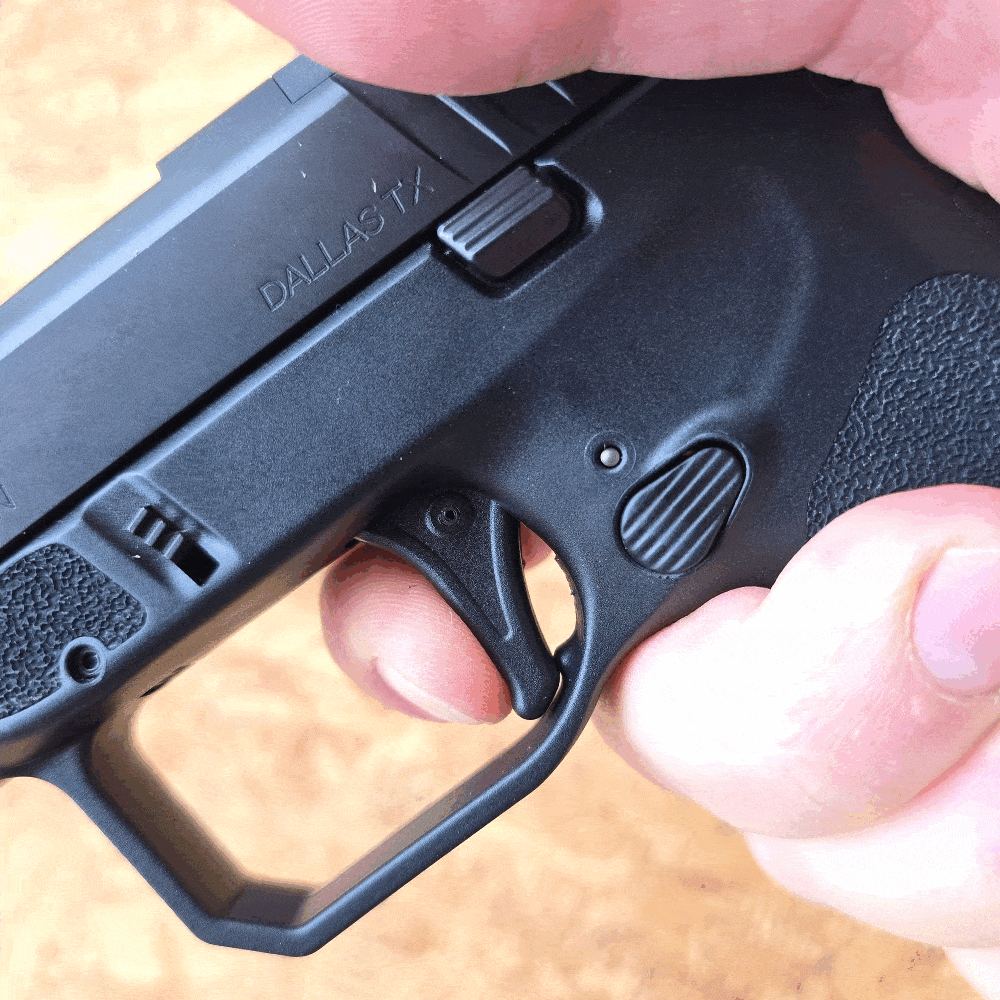 I found the magazine release button design to be spot-on. It’s protected at the rear by a raised area on the grip frame, rounded on the edges, serrated, and just sticks out far enough to be easy to activate intentionally, but hard to activate accidentally. Mags drop free.