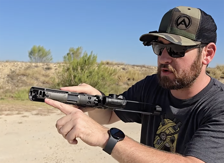 Nope. Once again, photos are shown with the shooters’ thumbs within 1/2″ of the muzzle. If that’s the default grip of this otherwise intriguing contraption, then that’s where it loses me.