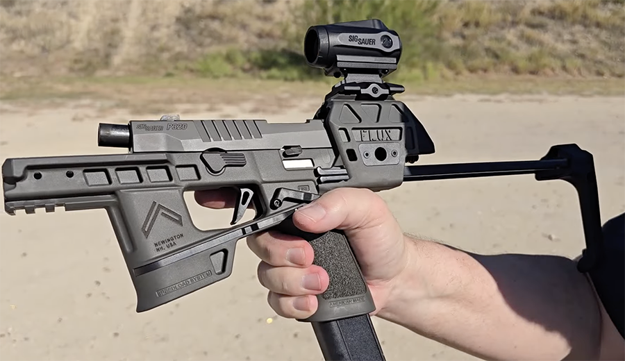 We wrote about SIG SAUER’s new P320-FLUX LEGION personal defense weapon when it was first announced back in June. It’s an unusual collaboration between SIG and FLUX DEFENSE. FLUX has been selling their Raider X P320 chassis as a sort of “add-on.” The idea is that owners of the modular P320 pistol can buy the chassis and assemble a unique, effective, and compact PDW that’s a great option as a truck gun, for home defense, or as a backpack gun.