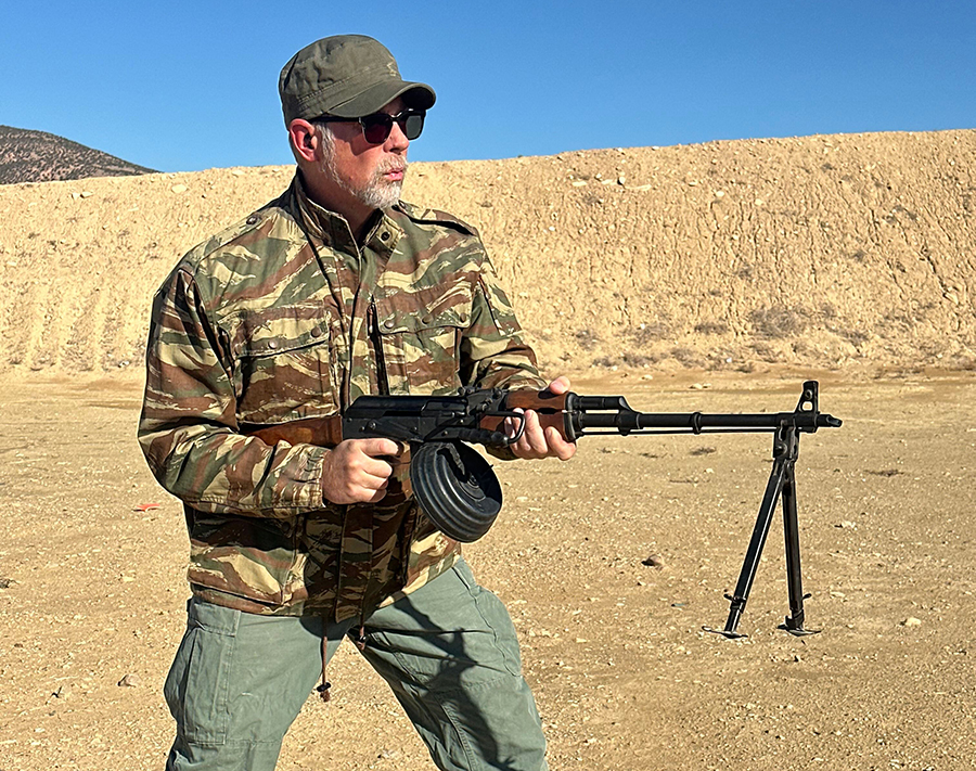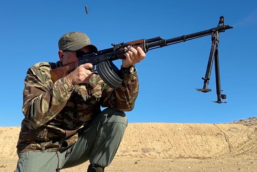 As for cyclic rate, the RPK had a relatively low rate of fire for a machine gun at only 600 RPM (rounds per minute). Again, for contrast, the M249 SAW has a cyclic rate of 850 RPM. The slower cyclic rate of the RPK meant that it was controllable not just from the bipod, but from a kneeling or standing position if the gunner fired in controlled bursts, as every skilled machine gunner can do. Also unique amongst machine guns in general, the RPK fired from a closed bolt, not an open one as most belt-fed machine guns do.