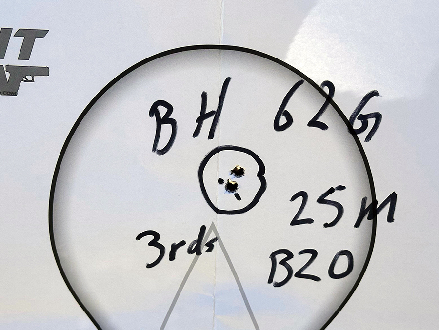 By the third 3-shot group, I had adjusted the EOTech reticle to where it needed to be at 25 meters. Then I took my time and slow-fired the final three shots for confirmation. Three rounds went into ¼ inch from that distance with two of the projectiles sharing one hole. I suppose you can say that the Tavor SAR has sufficient built-in accuracy.
