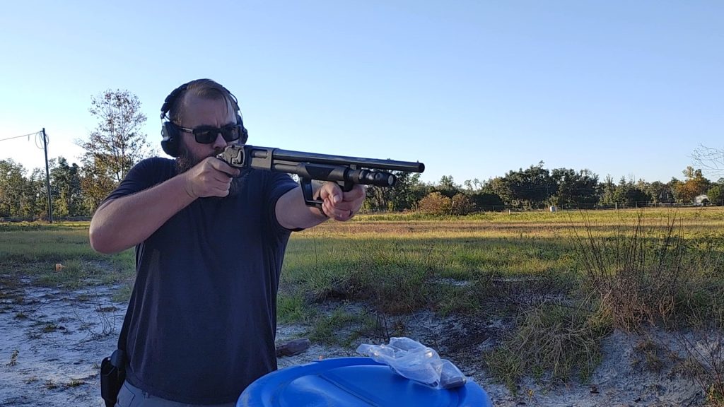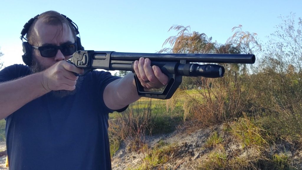 I can put two rounds of buckshot on target in less than a second at ten yards. That’s my standard with a stocked shotgun; with a pistol-grip-only gun, it’s tough. I credit that performance to the increased recoil control the Protector offers.