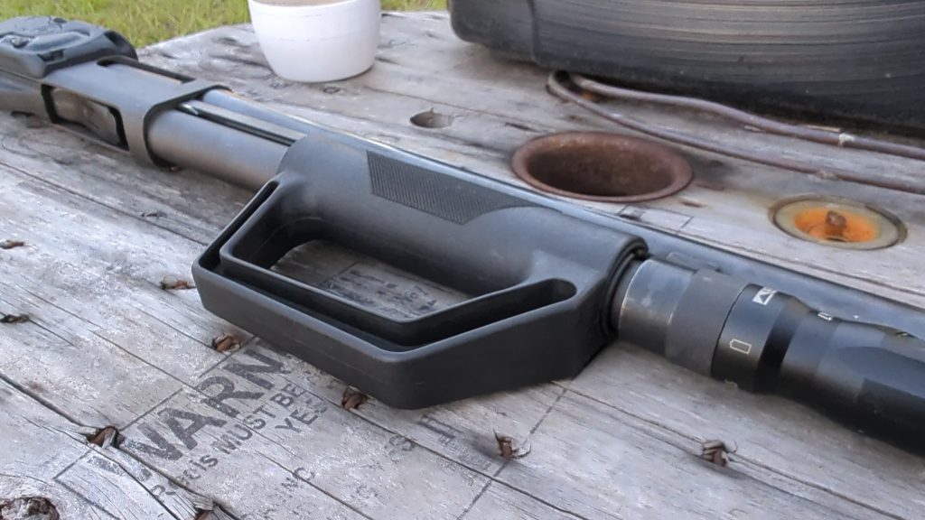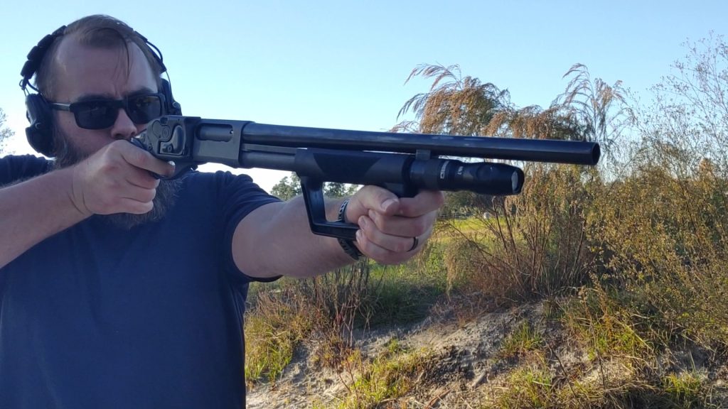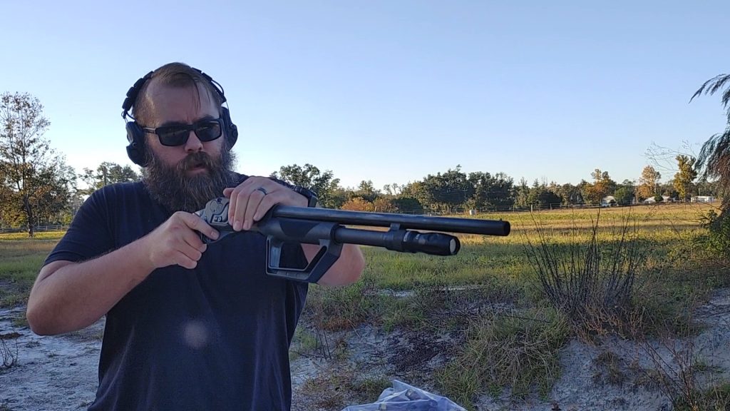 Is it better than a Shockwave-style grip? I don’t think so, at least in terms of ergonomics. I like aiming my PGO shotguns, and the Shockwave-style grip makes this feel a bit more natural. The downside of the Shockwave grip is that keeping it aimed at the target while reloading takes more wrist strength.