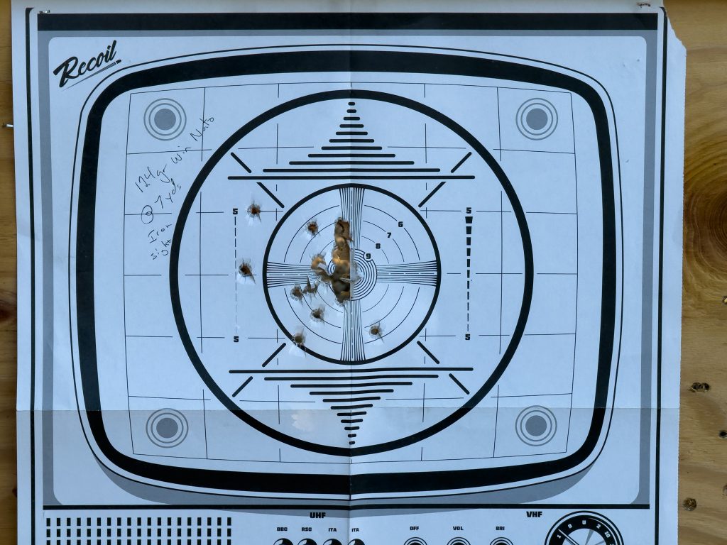For the first range session, I shot 150 rounds. While that may not seem like much for experienced shooters, that’s a typical range session for many people. Keep in mind, everything today is more expensive and our time is limited. For this session, I brought a box of Winchester 124-gr NATO-spec ammunition and an ammo can with a mixed lot of 115-gr ball ammunition from various brands. Temperatures hovered around 80 degrees and humidity was mild. For accuracy testing and note-taking, I drove to Kelbly Rifle’s range, just north of me (I use a private range for more dynamic shooting). I completed the initial testing at seven yards—a practical distance for many carry scenarios.