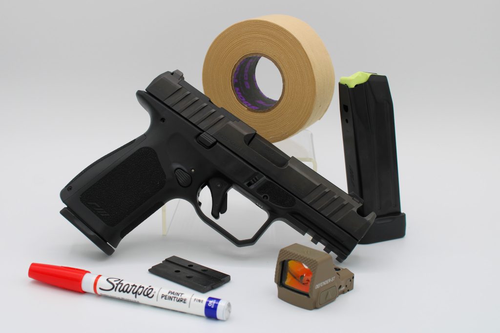 - Red Dot: The pistol is optics-ready, so I’ll take advantage of that. Unfortunately, it ships with only an RMR plate. That plate’s fine if you plan to run a Trijicon or maybe a Holosun. However, I intended to install a Vortex Defender-ST, which requires a Delta Point Pro plate. No big deal—I ordered the extra plate from Rost Martin for $23.50. Since I didn’t want to be too plain, I chose a FDE Vortex Defender-ST. Mounting was straightforward: remove the dust cover and use the screws provided by Rost Martin. I torqued everything to 18 in-lbs and then used a Sharpie paint marker to mark witness marks on the screws. (Pro tip: always do this—that way, you can easily tell if an optic screw is coming loose.) Note that the Defender-ST does not co-witness with the iron sights. Not a big deal to me, but it might be to some.