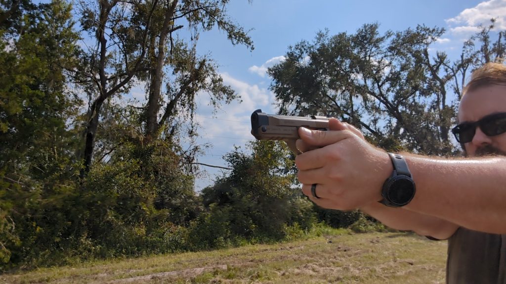 In terms of recoil, well, the blowback system does you no favors. The gun still more or less recoils like a short recoil-operated 9mm. It’s on par with a GLOCK 19. The large beavertail at the rear helps prevent slide bite, but it’s a bit awkward and impacts your hand (mine are large). It won’t make the gun difficult to shoot, but after several hundred rounds, it gets tiresome.