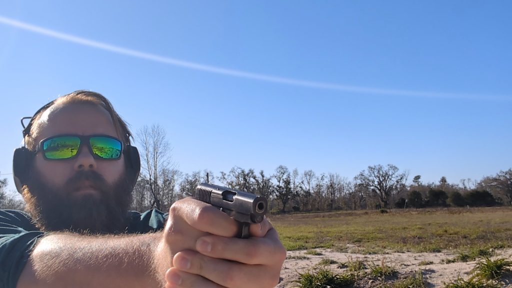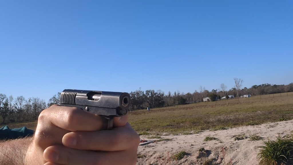 I’ve become a pretty solid shooter with small guns. With the P32, the LCP, and similar firearms, I can put rounds right where I want them within 10 yards. That’s not the case with the Destructor. It has almost no sights at all. Technically, there’s a front sight, but it’s just a tiny nub that aligns with the smallest slot one could imagine as a rear sight.