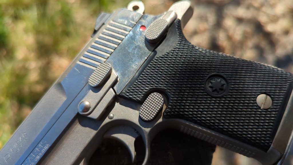 The Firestar has some magazine-related quirks. When you hit the button, the magazine doesn’t drop out. The user has to remove it. That’s perfect for tactical reloads but slow in an emergency. Since it’s a pistol from Europe in the 1980s, you get a magazine safety.