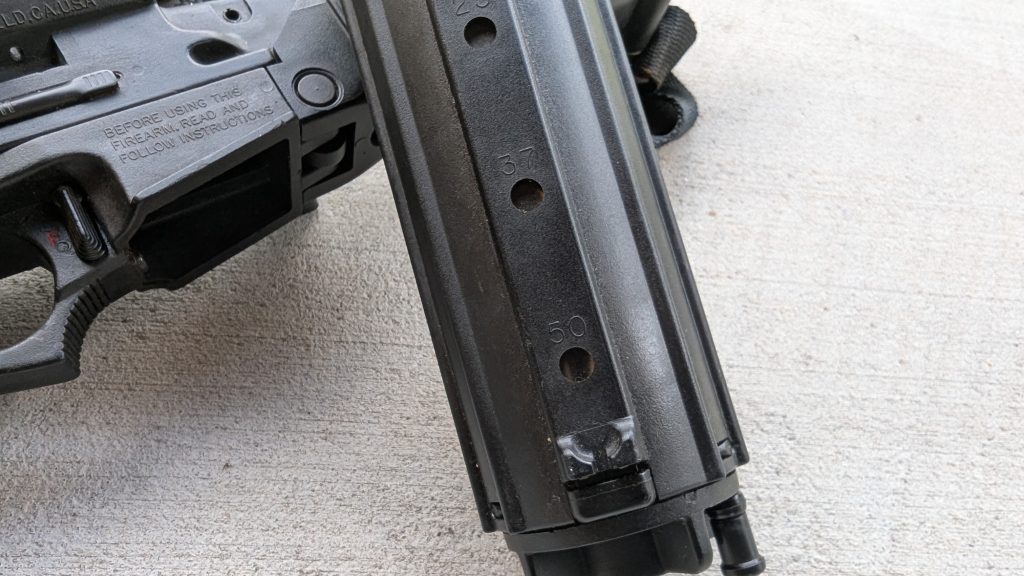 The top of the drum mag has witness holes marking seemingly random round counts. You get witness holes at 9, 23, 37, and 50 rounds. It works, mostly. The magazine isn’t difficult to disassemble and clean, and cleanliness is what keeps these magazines running smoothly.