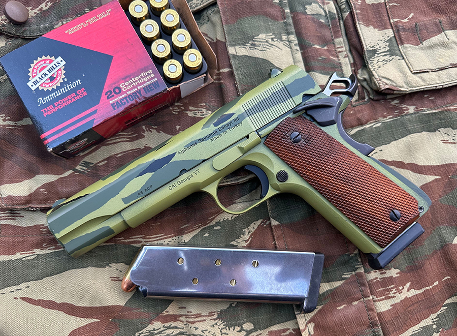 Also, I went back to the Duracoat catalog and ordered various shades of green to “jungle” the gun up. I should mention that I ordered a few new Ed Brown magazines to use with the project.