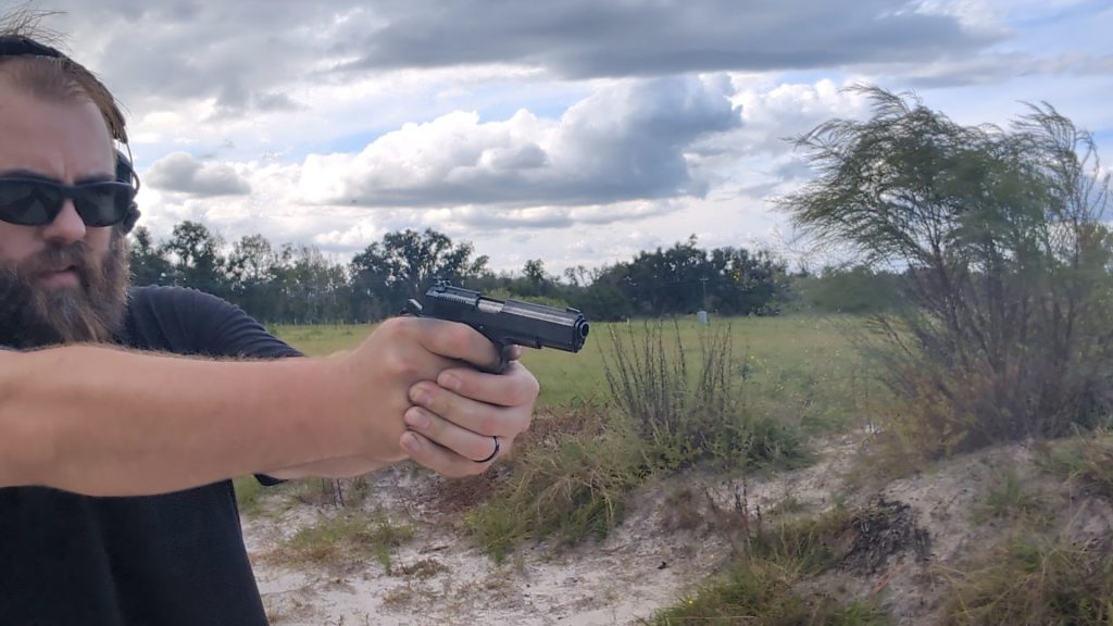 The M1911 has always been an standard of ergonomic excellence. The Llama just shrinks that to a more concealable size. It does a fantastic job of matching the M1911’s ergos in a smaller form factor. It feels great in the hand, with the slide moving easily, and the magazine release and safety in just the right places. It just feels fantastic.
