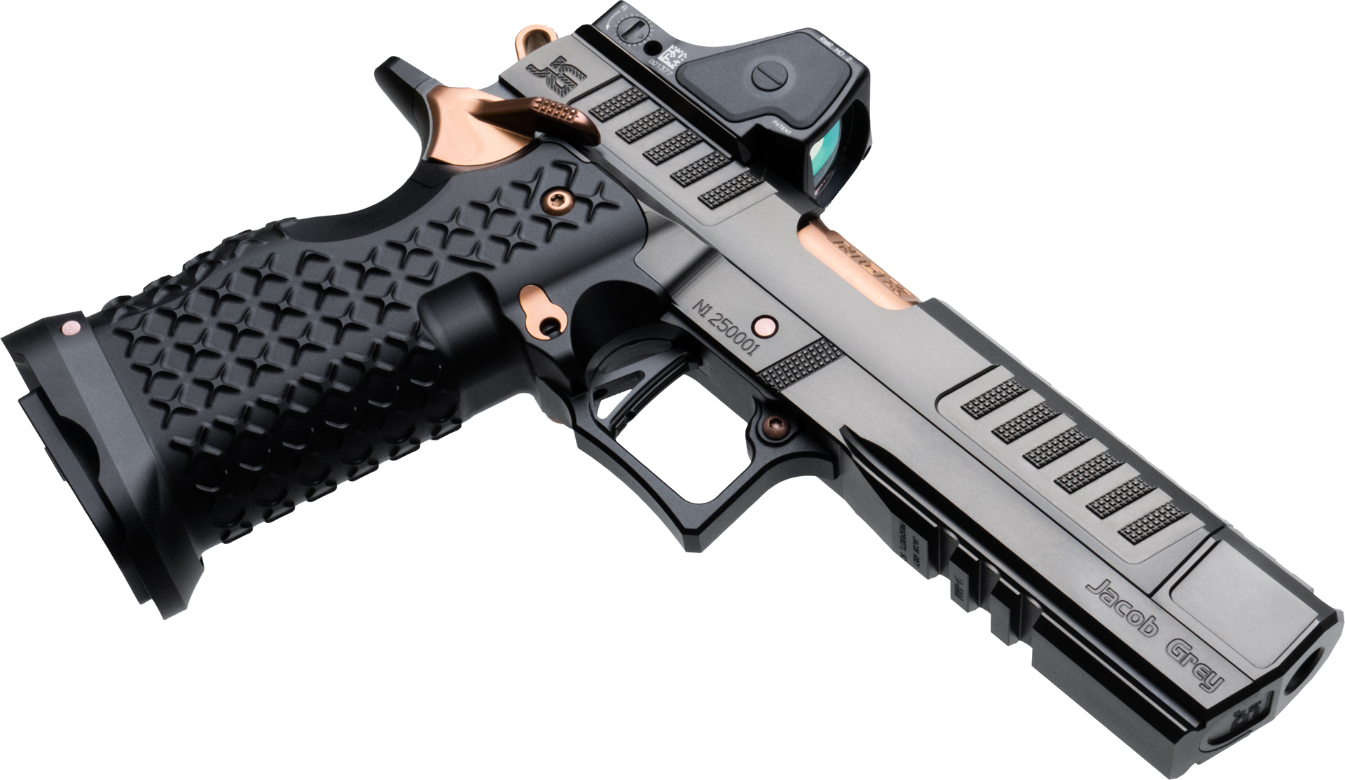 Precision meets power with the release of the Nox 9, the newest innovation from Jacob Grey Firearms. Built on a 4140 pre-hardened steel frame and packed with Armored Billet fully CNC machined components, the Nox 9 is setting the bar for Jacob Grey to lead the way forward with a new standard of precision components, coatings, comfort, recoil management and new revolutionary designs.