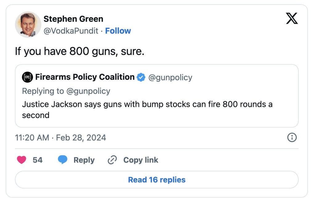— Stephen Green in SCOTUS Justice Jackson Just Said the Dumbest Thing About Guns and I Can’t Stop Laughing