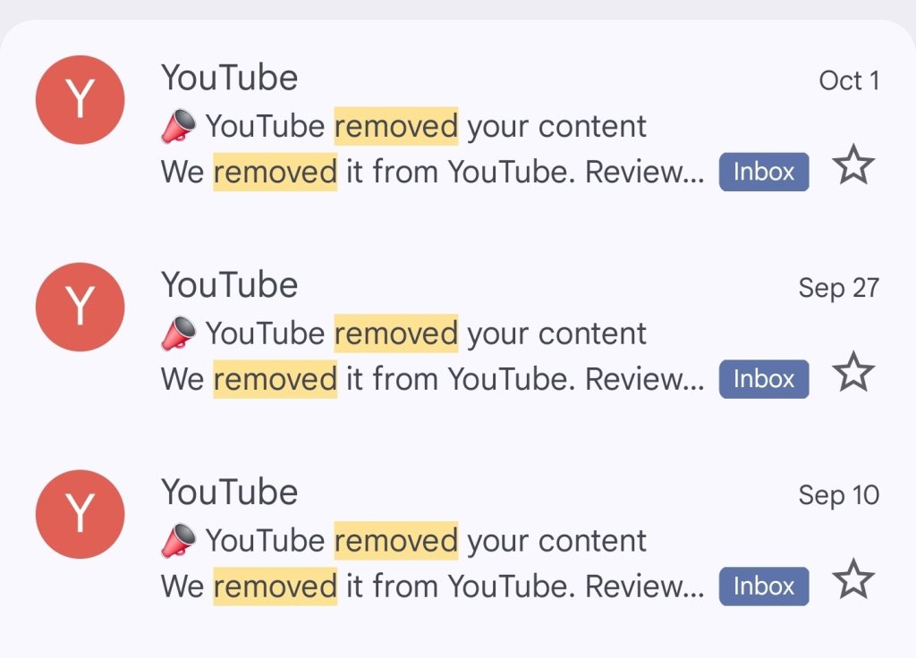 The reason? That’s hard to say exactly, but this is what YouTube provided in each case: