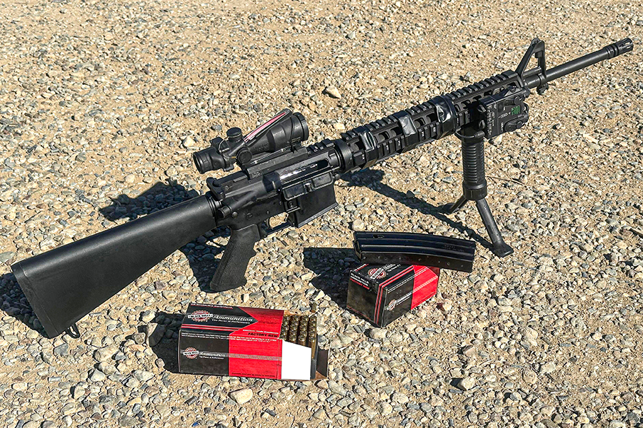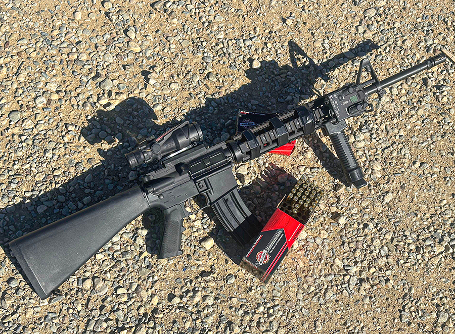 In order to put this thing together, I gathered components from Springfield Armory, Midway USA, and DTI (Del-Ton Inc). Sadly, Del-Ton is currently out of business. From DTI I purchased a 20-inch barrel complete flat-top upper with a BCG. The original polymer A2 handguards were replaced by an aluminum quad rail system purchased from Midway USA. The complete SA16A2 lower came from Springfield Armory. Assembling all those parts was easy enough.