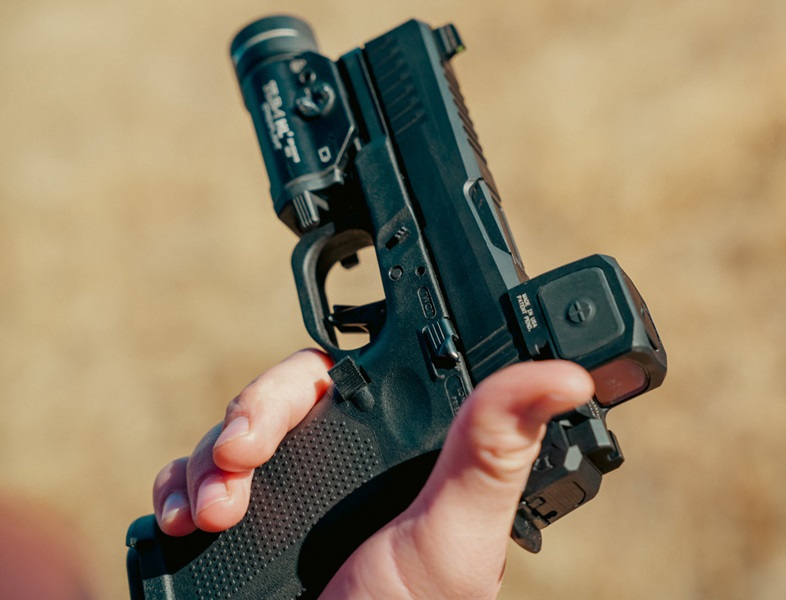 The complete Timberwolf Pistols include the Enhanced Flat Trigger. The EFT trigger provides a 30% reduction in peak force and a flat trigger face that has become so popular. I was skeptical about flat triggers, but once I put one in I realized the improvement it makes in the trigger press. The shooter is able to position the trigger finger lower on a flat trigger, taking advantage of the fulcrum and making the trigger ‘feel’ easier to press.