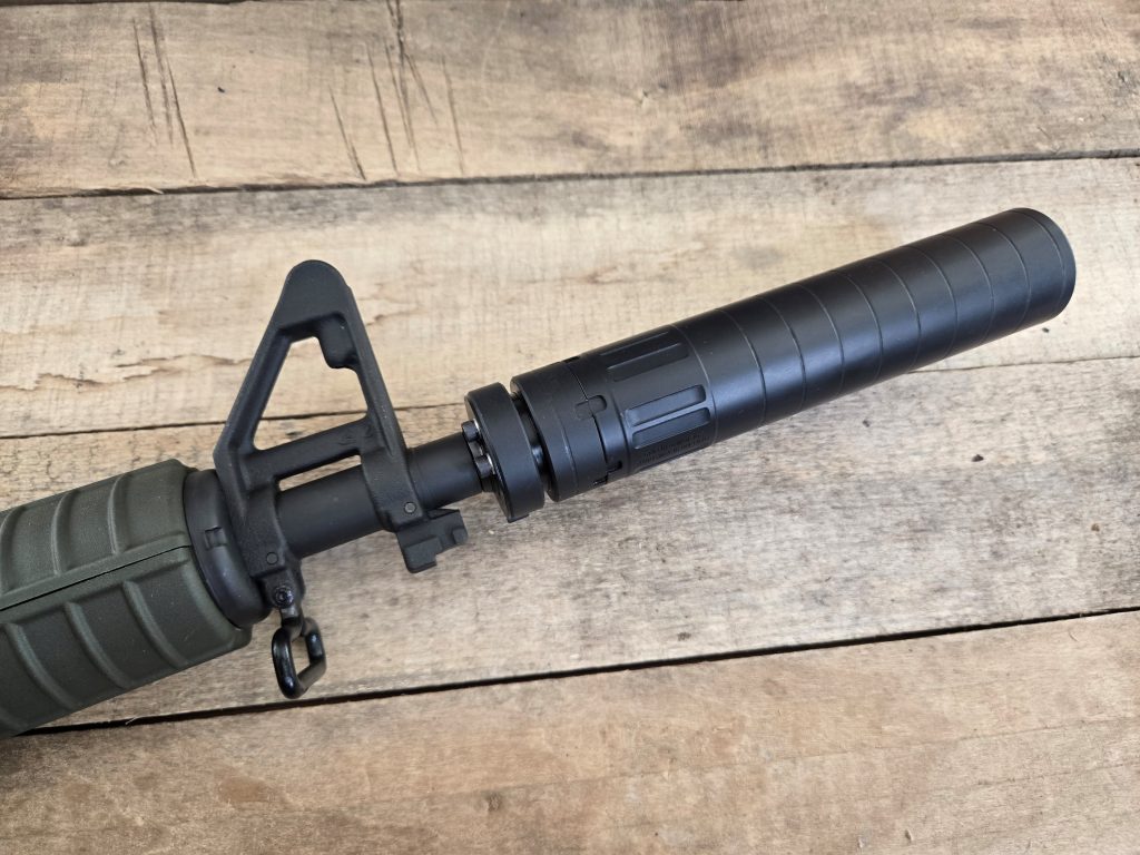 I tried the GATE-LOK-equipped Griffin Ultra Light .36 on a variety of my ARs. Thankfully the mount worked with most of my rifles and carbines. That means I can now shoot my various M16 clones in 9mm, 5.56, and .300 Blackout suppressed when I want to.