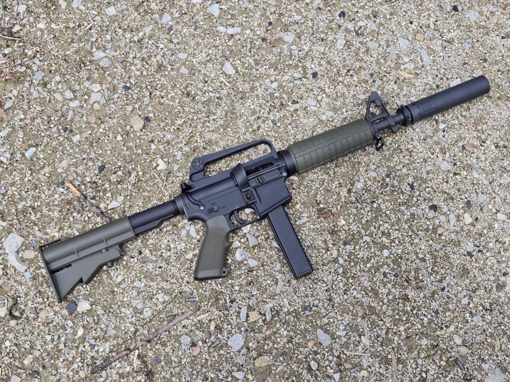 I have a .350 Legend AR as well, but it has a VG6 Gamma comp on it at the moment. I’m going to swap that out with an A2 flash hider so I can suppress it as well. I ended up picking my 9mm Colt 635 subgun clone SBR and my 5.56mm IDF M16 Menusar builds for my first range trip with the GATE-LOK system.