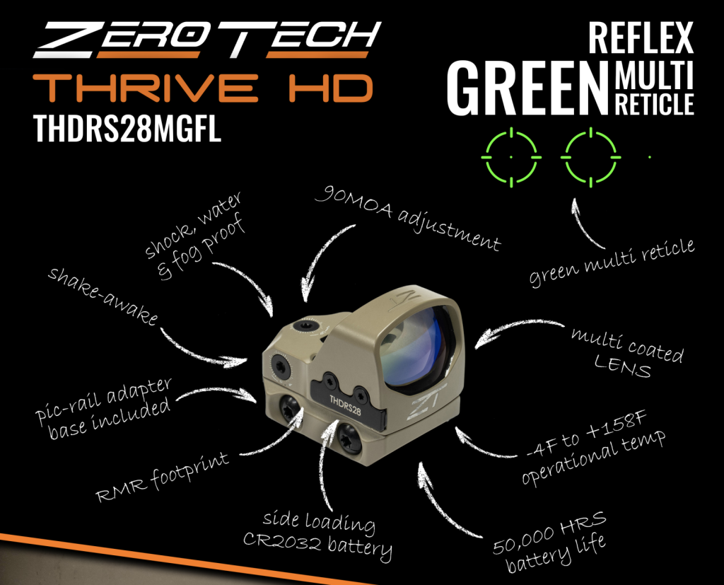 More details about the new ZeroTech Thrive HD multi reticle green dot reflex sight can be found via that link to the ZT website. If you’re in the market, coupon code SNW20 should net you 20% off!