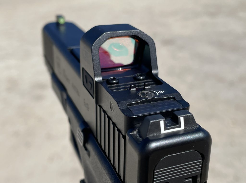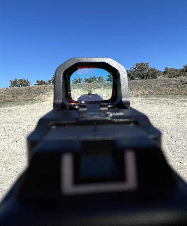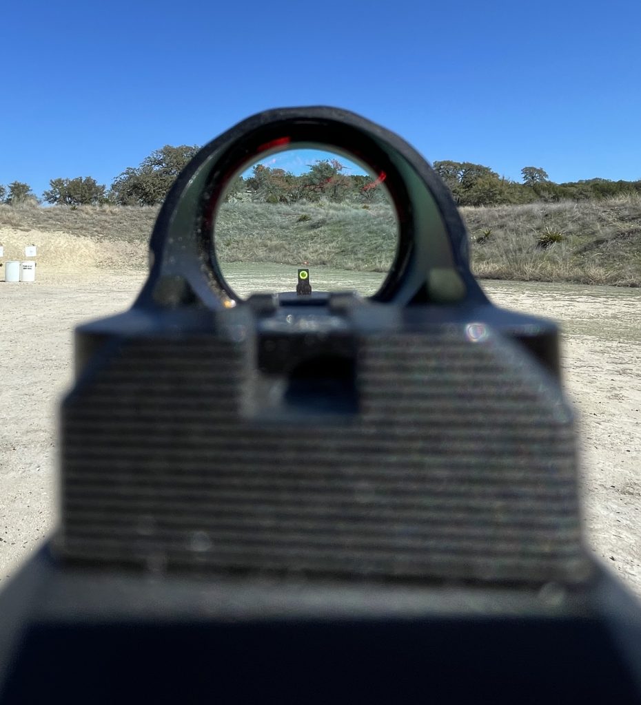 The sight is tough, too. I’ve banged it around both on the range and in carrying it on an everyday basis for a while now and its 7075 aluminum housing hasn’t missed a beat. There’s also no lag or flicker. You can move from target to target smoothly.