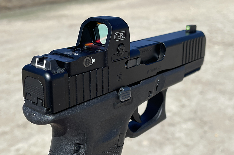 Seen here is the C&H DMO for the GLOCK MOS mounting system. The GLOCK optic mounting system works well, but requires the use of a plate. That means raising the height of the sight and, depending on the iron sights you’re using, losing the ability to co-witness.