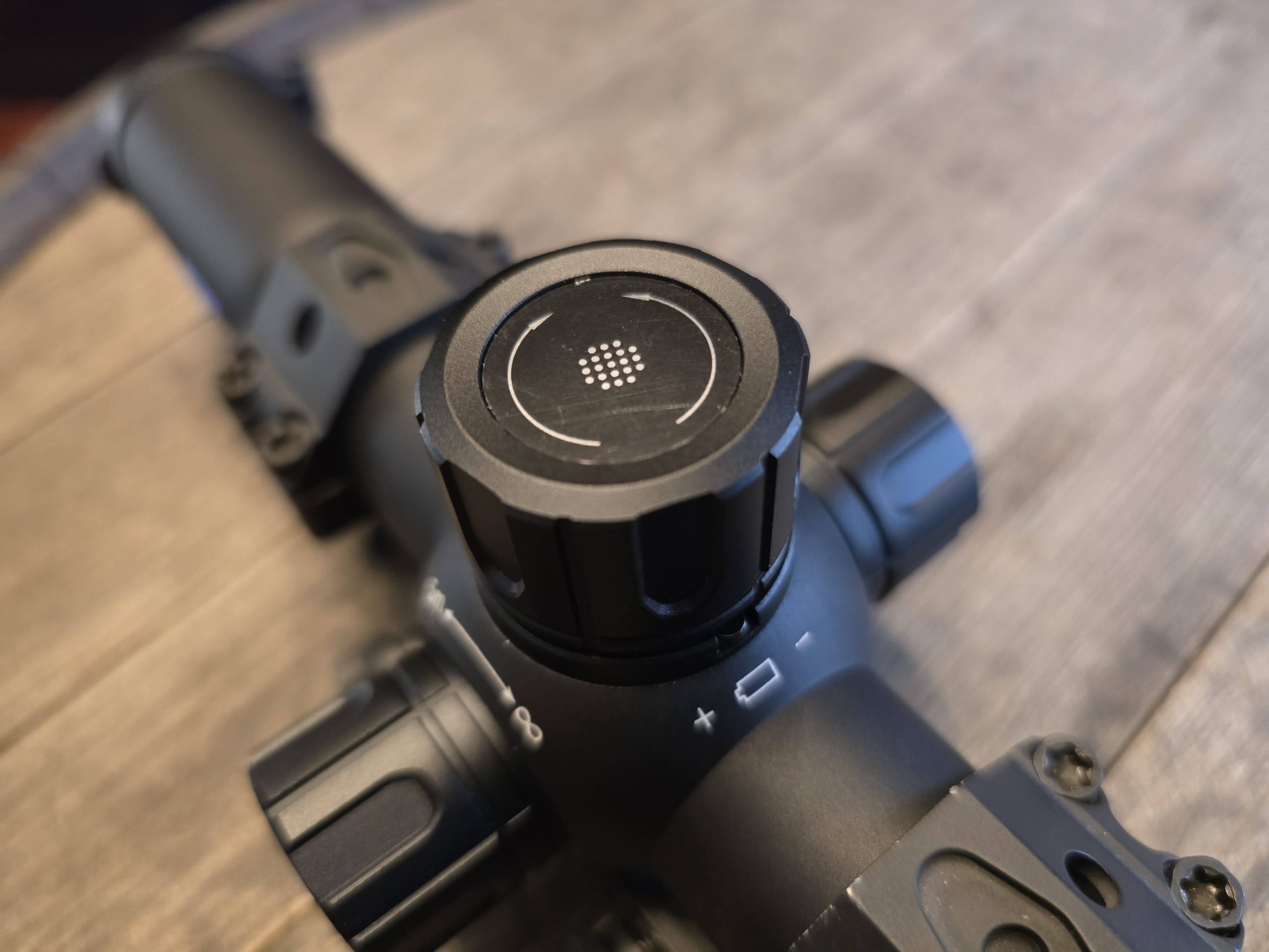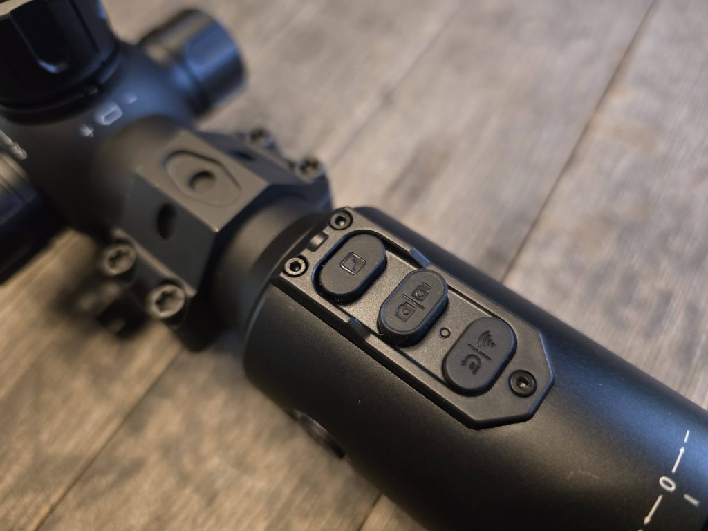 Up top, where you’d normally find an elevation turret is your primary menu navigation control. The turret/dial/knob rotates to move through the menus and settings and clicks downward toward the scope to make selections. It’s a fairly intuitive system similar to what you’ll find in a lot of vehicles these days.