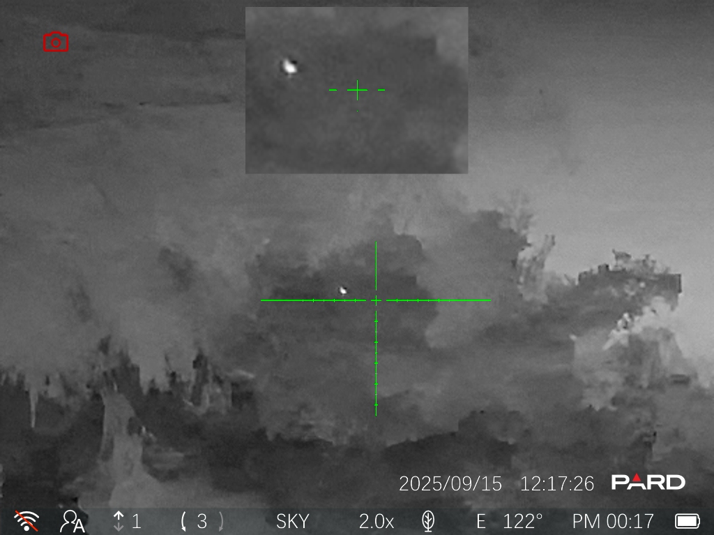 “Sky” mode, whatever that is. (“The Sky mode provides an alternative visual representation of the thermal image, which can be beneficial for highlighting specific targets or features depending on the user’s needs and the surrounding environment.”)