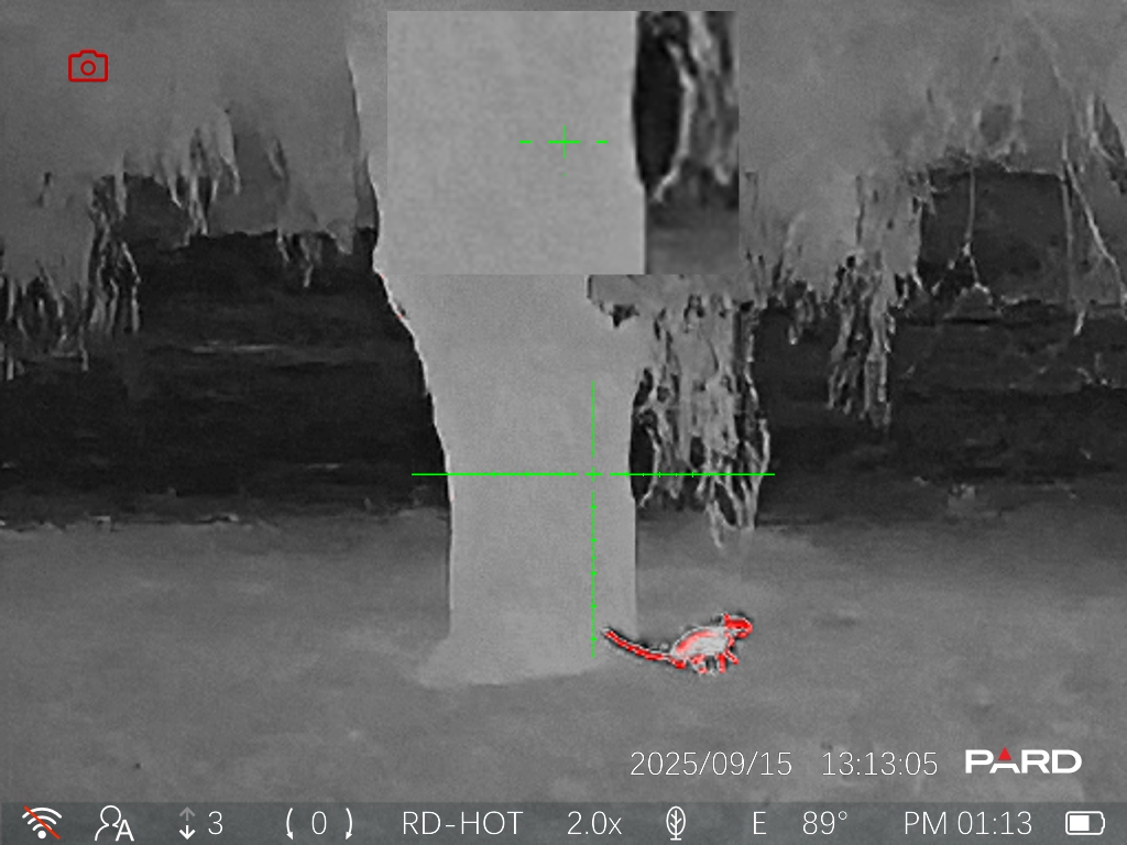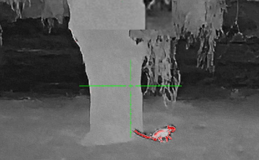 Seen above is White Hot image mode. That’s a rat in the tree to the left left and just up from the crosshair.