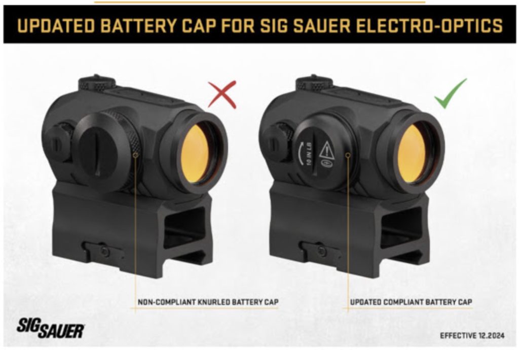 Additionally, the CPSC says, SIG failed to meet the warning label requirements for the batteries on the optic itself. A warning label is required to be on the red dot, warning users that the product contains a button cell battery. You can check the image above to see how SIG has been forced to fix the issue.