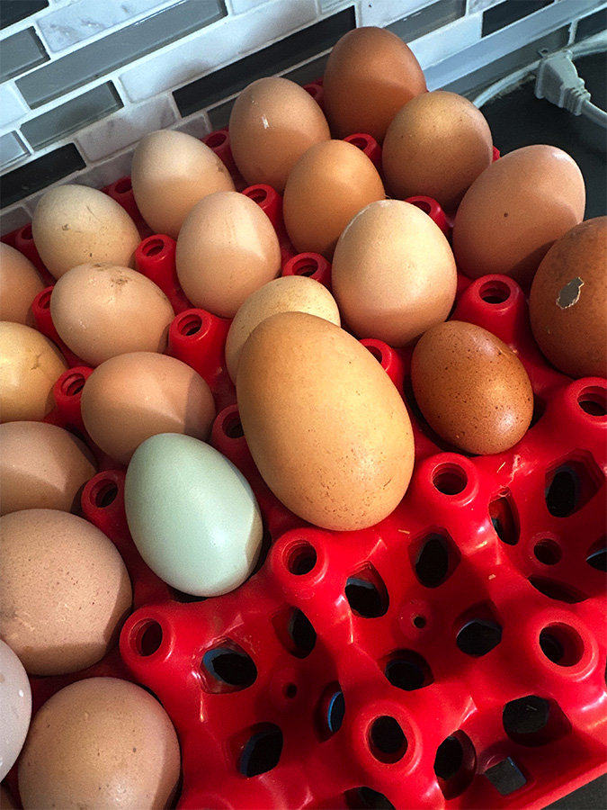 If you are planning to buy those cute little chicks from the farm store and raise them to lay eggs, that will work, but it will be about four months from the day you bring them home until they start laying. Yes, you need to buy a special feed for the young ones and they will not be able to go out and graze/scratch for the first month to six weeks. When your juniors do start to lay, their eggs will be small and cute. Some folk call these “fairy eggs”. Two fairy eggs equal about one standard, large egg.