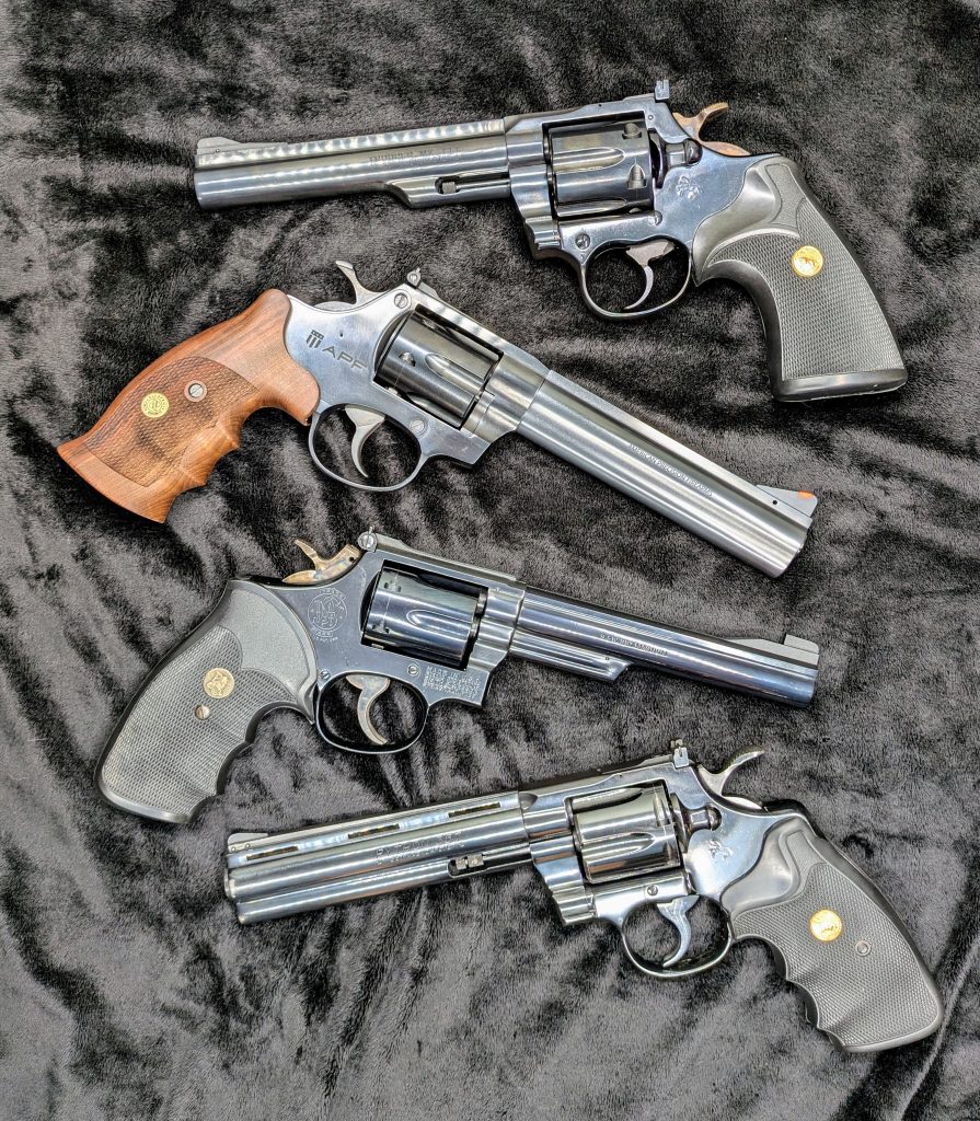 Colt Trooper MKIII, APF-R1 Model 3561, S&W Model 19, and Colt Python
