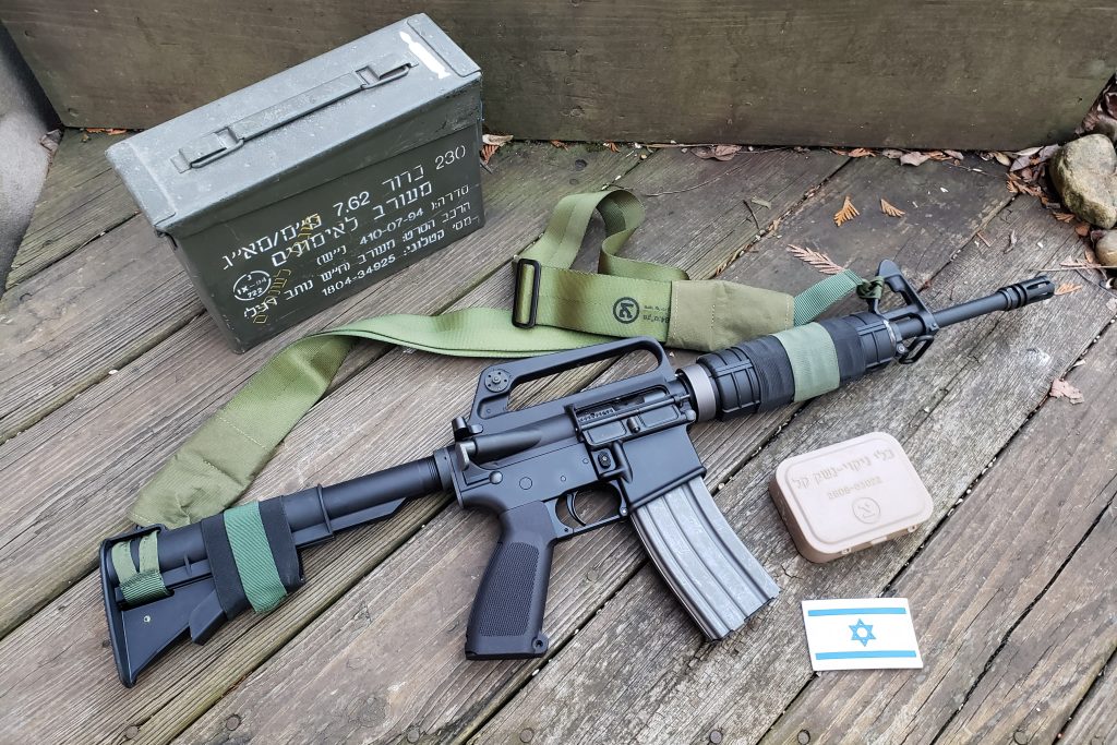 Back in the early 1970’s Israel received tens of thousands of M16A1’s as aid from the United States. They later bought more on their own. These were initially traditional fixed-stock, 20 inch barrel rifles, but as time went on and Israel needed a shorter, handier platform they began to convert those M16’s by swapping out the fixed stocks with a carbine buffer tube and CAR stock, and by shortening the barrels. They chopped the barrels down just behind the gas port, drilled a new port and shifted the front sight base back.