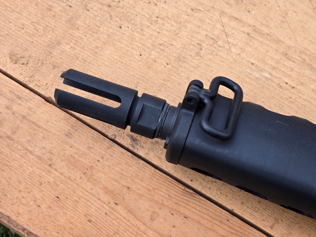 I used a Young Manufacturing 4-prong flash hider that I picked up from JSE Surplus. It had the look of the original K flash hider and was very reasonable. I then installed the handguards and dropped in a basic GI charging handle and a Toolcraft BCG from my parts bin.
