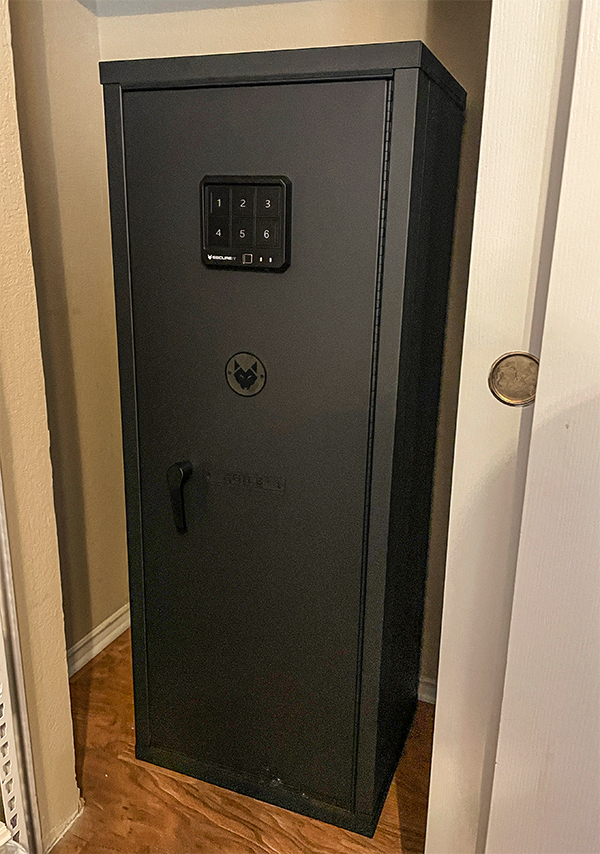 The completed Agile Model 52 safe weighs about 100 pounds when it’s all put together. That’s light enough to move around by yourself if you want to relocate it. At 15½ inches deep and 20 inches wide, it fits easily inside a closet — that’s where I keep mine — where it will stay out of sight, but still be easy to access quickly. There are holes in the bottom so you can screw it down to the floor which isn’t a bad idea.