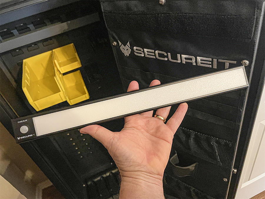 Finally, I finished tricking mine out with a rechargeable, magnetic light bar. It charges via a USB cable and has a motion sensor so it turns on any time you reach inside. You can even set it to put out red light rather than white…if that’s something you’re into.