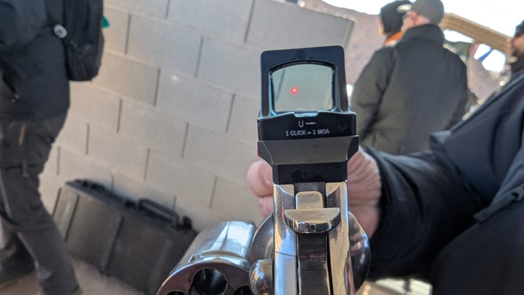 The mount replaces the rear sight and sits fairly low on the gun. Well, it’s low for a revolver, anyway. Currently, they are using an RMR pattern plate, but they plan to offer more in the future. I think a red dot on the Diamondback would be an excellent steel challenge gun and on the bigger guns, we have a good hunting revolver with more precision added to it.