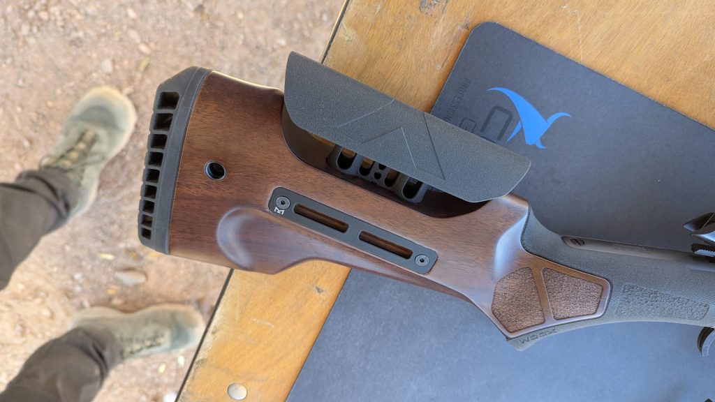 The Bravado stock has a textured, angled pistol grip for excellent control and a comfy way to pull the rifle into your shoulder. You have a few M-LOK slots there too for mounting ammo carriers, sling mounts, and more. The stock looks fantastic and has a super comfy cheek pad. The Woox furniture is also lightweight and well balanced.