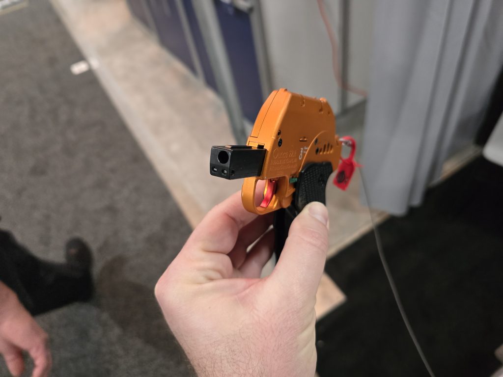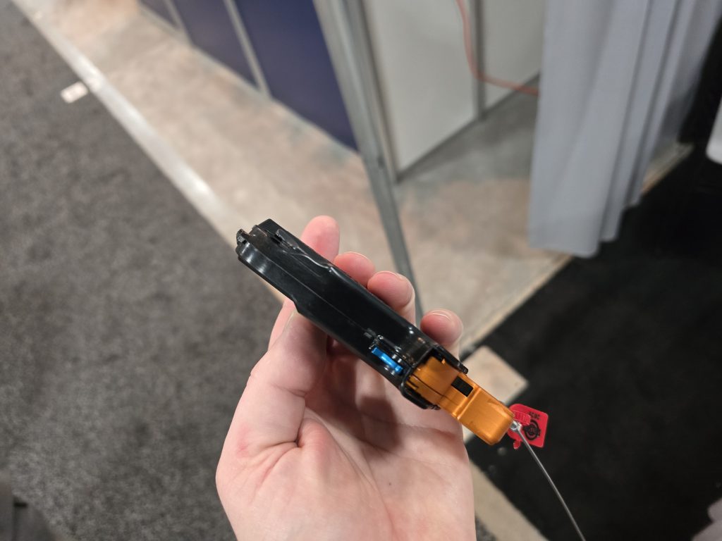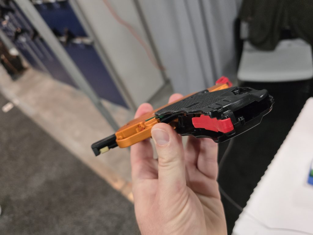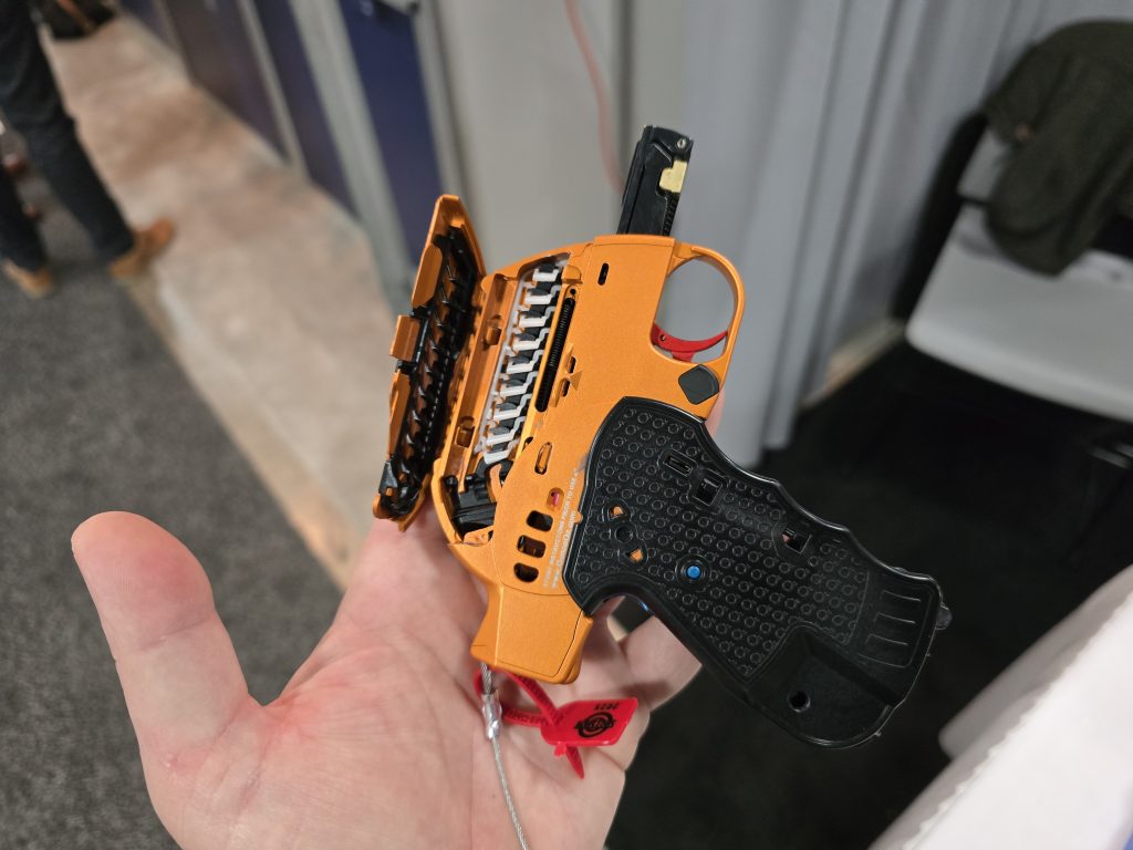 This is not the first year for the Ounce pistol at SHOT Show, but I do believe it was my first time stumbling upon it. The little guy holds 10+1 rounds of 22 LR in a folding, semi-automatic package that weighs just 8.3 ounces fully loaded and is only 7/8-inch thick.