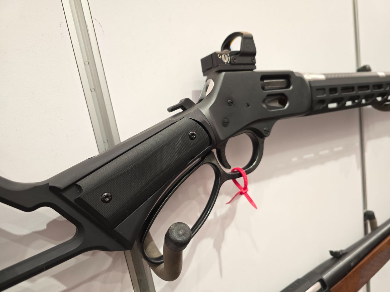 This display model is chambered in .45-70 Gov’t with a JK Armament RPX 45CAL suppressor and some modern furniture.