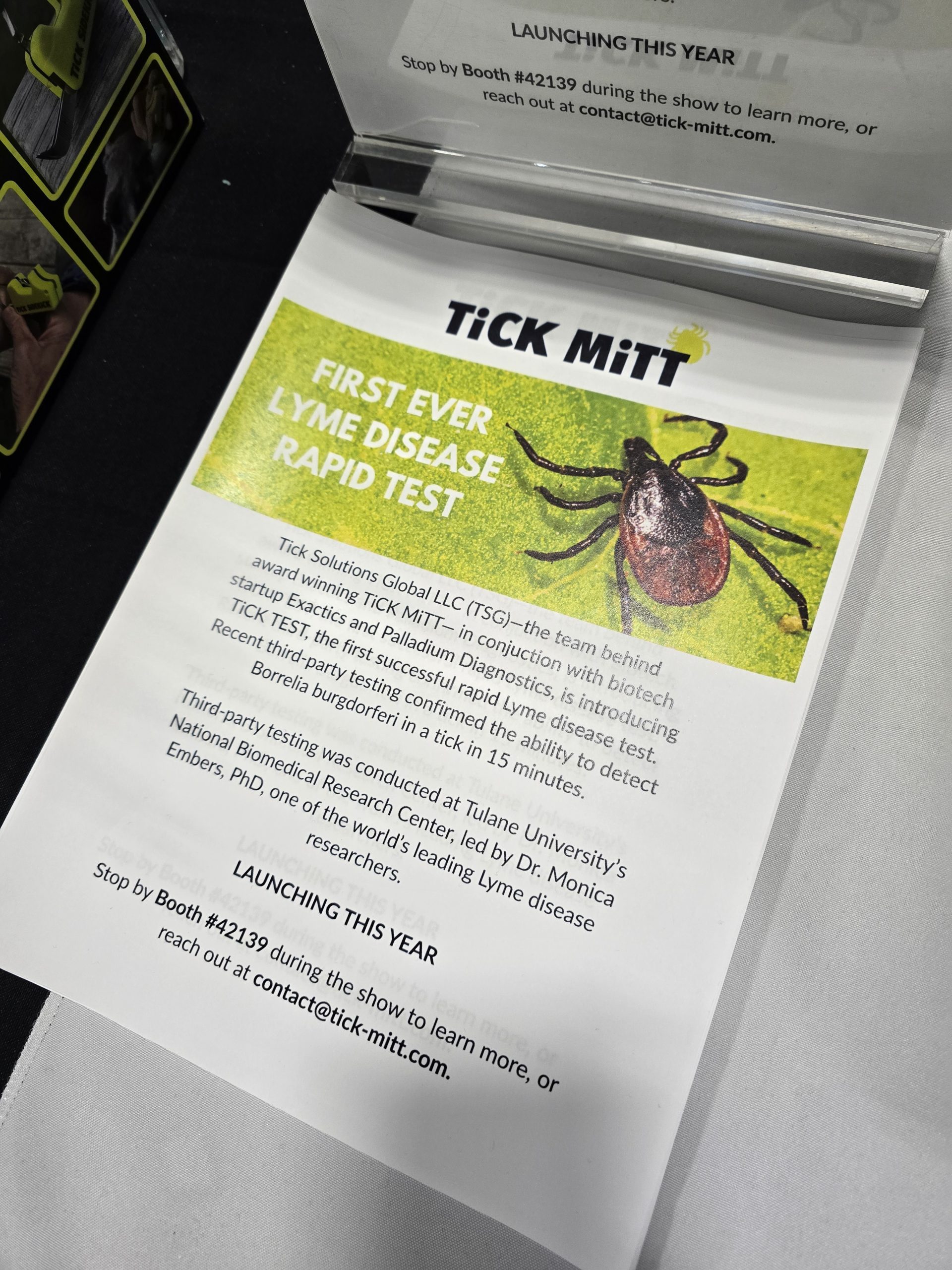 Finally, this year the TiCK MiTT team is launching a Lyme disease rapid test. If you live in an area where Lyme disease is common, in 15 minutes this test will tell you if the tick you removed was a carrier.