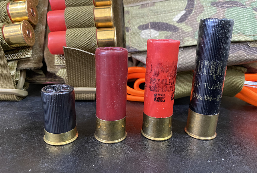 The most common size for the 12 gauge is a 2 ¾ inch shell. The 3 and 3 ½ inch shells offer greater effective range (distance) but will thump your shoulder noticeably. I have said for years that the 3 ½ inch turkey and goose loads should come with a rubber mouthguard to help keep your dental fillings in place. The 1 ¾ inch 12 gauge “shorties” or “hater-tots” are interesting and can be practical and useful. I’ve been shooting them for about 15 years or so.
