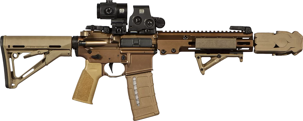Looking more like an artifact from the movie Stargate than something that attaches to your firearm, the truly revolutionary MFMD is a flash hider, suppressor, and muzzle brake all in one. It’s a high-flow, baffleless design that controls and redirects muzzle gases rather than containing or capturing them.
